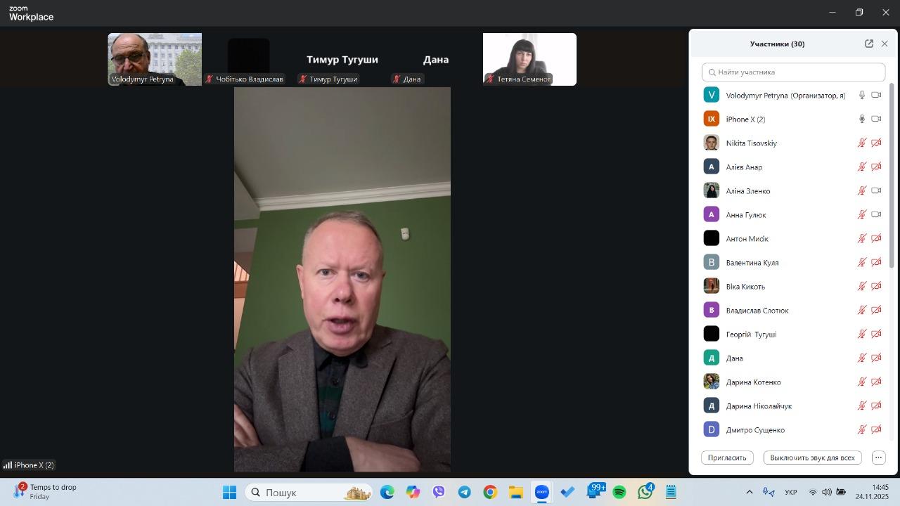 26-11-2025 Переглядів: 1224 листопада для здобувачів другого (бакалаврського) рівня вищої освіти за спеціальністю «Право» інституту заочного та дистанційного навчання проведено практичне бінарне заняття за участю заслуженого юриста України, арбітра Міжнародного комерційного арбітражного суду при Торгово-промисловій палаті України Василя Євгеновича Мармазова – визнаного фахівця у сфері альтернативного вирішення спорів, який має дипломатичний ранг Надзвичайного і Повноважного Посла України.